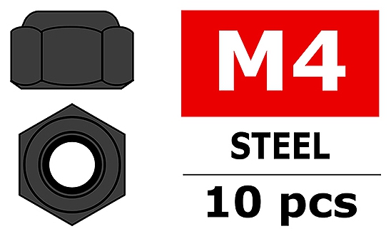 Corally CORALLY STEEL NYLSTOP NUT M4 BLACK COATED 10 PCS C-31003