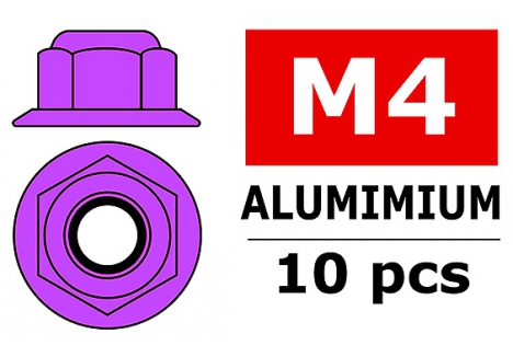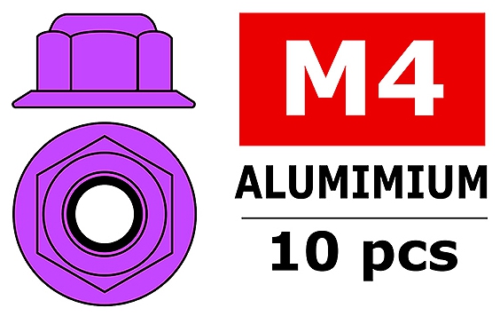 Corally CORALLY ALUMINIUM NYLSTOP NUT M4 FLANGED PURPLE 10 PCS C-31132