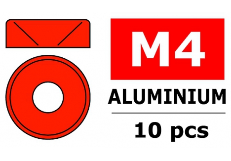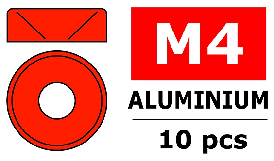 Corally CORALLY ALUMINIUM WASHER FOR M4 FLAT HEAD SCREWS OD=10mm Red (10pcs) C-3213-40-5