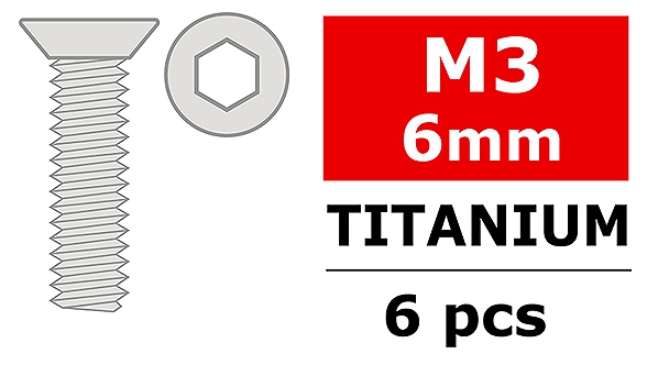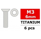 Corally CORALLY TITANIUM SCREWS M3 X 6MM HEX FLAT HEAD 6 PCS C-34011