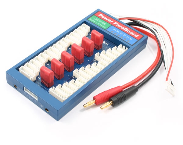 The Power ParaBoard is used to balance charge up to 6 lithium batteries in parallel (they must be same cell count). By using this method you can significantly save time on the battery charge process and finally make use of your high power charger!