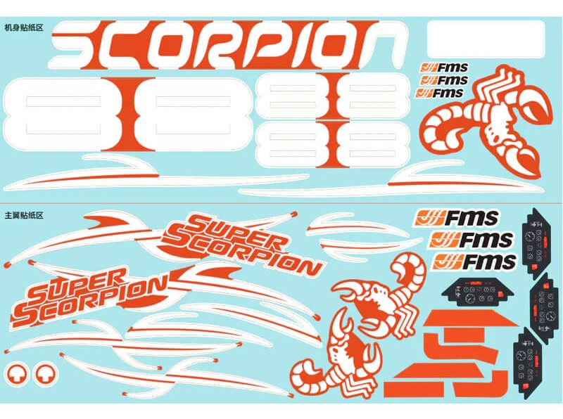 FMS FMS 90MM SUPER SCORPION V2 ORANGE DECAL SHEET FMSEQ109OG