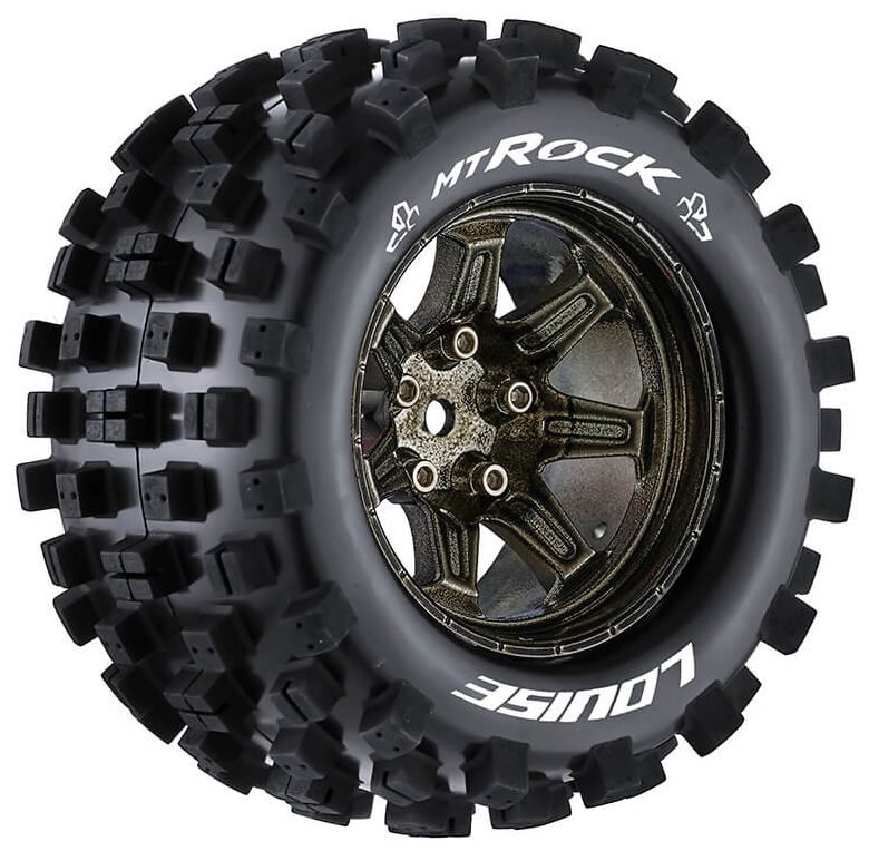 Series: MT-RockCompound: SoftColour: Black ChromeHex Fitment: 14mmFits: 1/10 Monster Truck, Granite 4x4Tyre Width: 52.0mmTyre Diameter: 103.2mmWheel Offset: TBCIncludes Insert: YesGlued: Yes