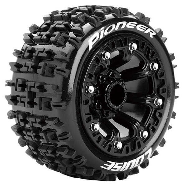 Series: ST-PioneerCompound: SoftColour: BlackHex Fitment: 12mmFits: 1/16 Stadium Truck, E-Revo FR/R, Summit FR/R, Savage XS Flux FR/RTyre Width: 43.5mmTyre Diameter: 90mmWheel Offset: TBCIncludes Insert: YesGlued: Yes