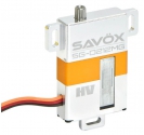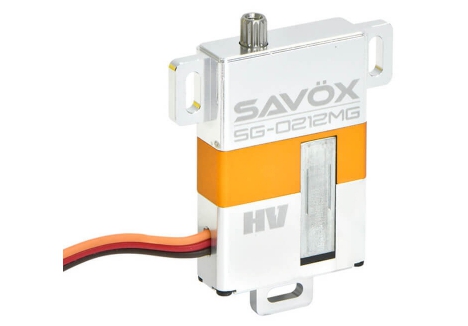 The Savox SG0212MG servo is only 8mm deep and therefore ideal for the usage in thin wings of speed models and gliders. The full aluminium case makes it light and prevents over-heating. Highest precision for your model is guaranteed by backlash double ball bearing gears.