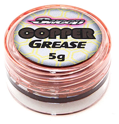 The copper grease contain actual copper and is used for special applications in the R/C community. Once used, it is water-resistant and won't fly off. It is also resistant to high heat and pressure, keeping strong against other chemicals it may come in contact with. Use Sweep copper grease wherever you need lubrication that stays in spinning parts, differential joints, servo savers and hinge pins.