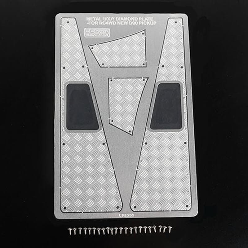 RC4WD STEEL FRONT SIDE HOOD DIAMOND PLATES FOR RC4WD GELANDE II 2015 LAND ROVER DEFENDER D90 (PICK-U VVV-C1085