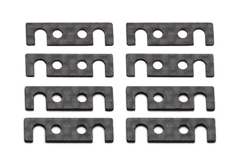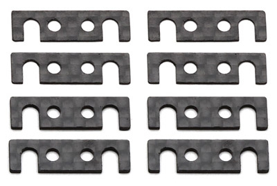 Each package includes eight (4 x .5mm, 4 x 1mm) lightweight graphite suspension mount shims featuring a design that makes them simple to install and remove for quick setup changes.
