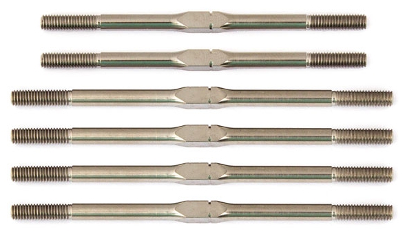 qty 2 Titanium Turnbuckles, 3x58mm (2.30"), silver. qty 4 Ti Turnbuckles, 3x67.31mm (2.65"), silver.