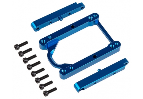 Factory Team engineers created a new CNC machined aluminum engine mount split design for the RC8B4 series of buggies and trucks. The new set comes with separate left and right upper aluminum mounts that key into the engine mount base. After assembling the engine onto the mount and into the vehicle, simply remove 4 socket head screws from the top of the base, and the engine and upper mounts will come out of the vehicle without having to move the base and affect the gear mesh.