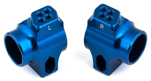 The new Factory Team aluminum rear hubs offer the ability to run 67mm CVA bones for increased rear support under lower ride height conditions. Axle height is adjustable by using the existing plastic inserts that come with the stock rear hub.