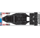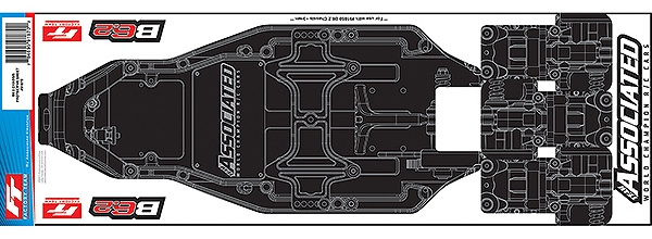 Whether you race indoor or outdoor, protecting your chassis from premature wear will improve its lifespan and help maintain performance. This Factory Team pre-cut chassis sheet is made from adhesive-backed 18-mil vinyl and offer a protective surface while looking trick with intricate details for that Factory Driver look. Sheets are printed in gloss black and include two extra tail sections to replace as they wear. For the AS91850 +3mm chassis. (Use AS91825 for the B6.2D chassis.)