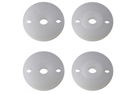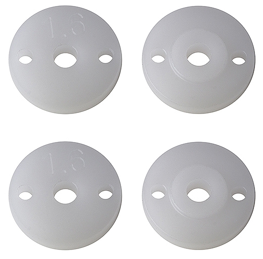 Factory Team introduces a new tuning option for off-road 12mm shocks. The new 2mm thickness V2 shock pistons decrease damping and pack compared to their standard 2.5mm thickness kit counterparts. Keeping the same 2-hole valving, the shorter thickness piston allows for faster fluid flow, and less pack (pack = increased rate of resistance) while the shock takes fast impacts from jumps and bumps. This results in a small shift, giving the car more traction and less pack, which racers can tune for an advantage in a wide range of conditions.