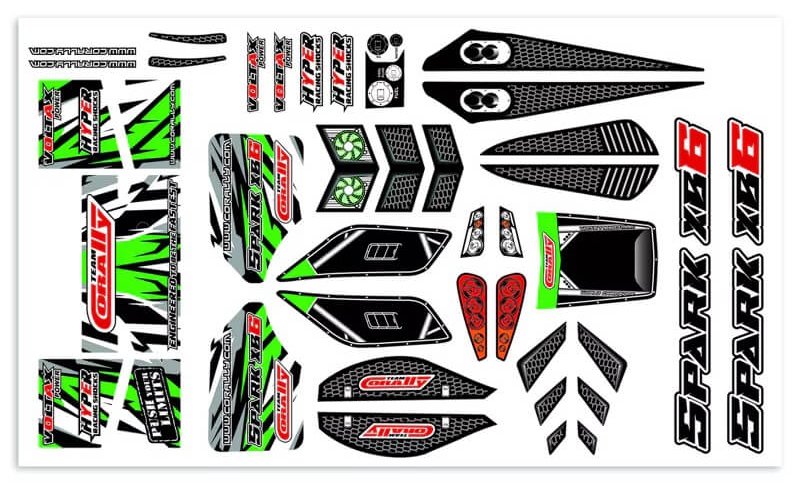 Corally TEAM CORALLY BODY DECAL SHEET SPARK XB6 GREEN - 1PC C-00180-1169-G