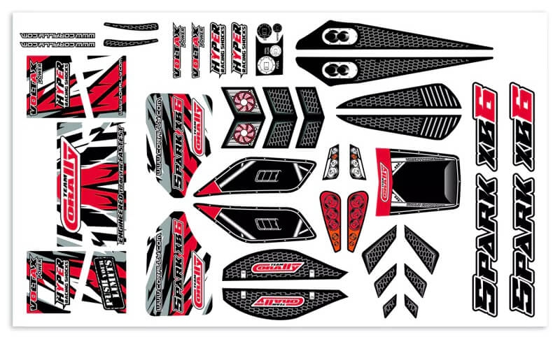 Corally TEAM CORALLY BODY DECAL SHEET SPARK XB6 RED 1PC C-00180-1169-R