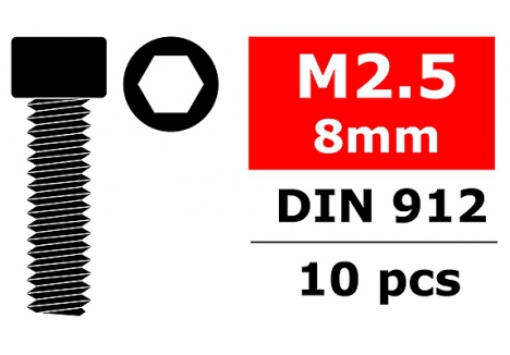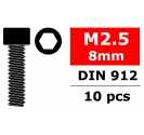 Corally CORALLY STEEL SCREWS M2. 5 X 8MM HEX SOCKET HEAD 10 P C-3001-25-08