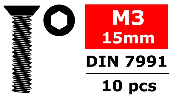 Corally CORALLY STEEL SCREWS M3 X 15MM HEX FLAT HEAD 10 PCS C-3002-30-15