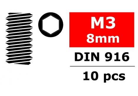 Corally CORALLY STEEL SET SCREWS M3 X 8MM HEX 10 PCS C-3004-30-08