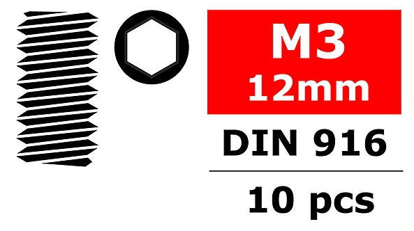 Corally CORALLY STEEL SET SCREWS M3 X 12MM HEX 10 PCS C-3004-30-12