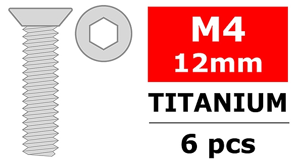 Corally CORALLY TITANIUM SCREWS M4 X 12MM HEX FLAT HEAD 6 PC C-3022-40-12