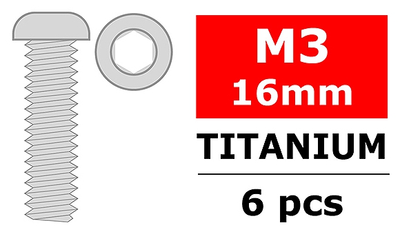 Corally CORALLY TITANIUM SCREWS M3 X 16MM HEX BUTTON HEAD 6 C-3023-30-16