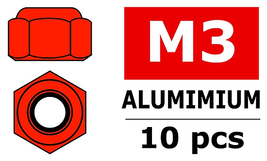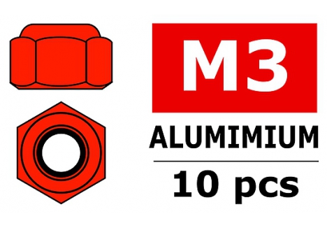 Corally CORALLY ALUMINIUM NYLSTOP NUT M3 RED 10 PCS C-3106-30-5