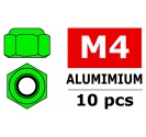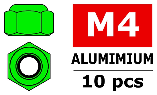 Corally CORALLY ALUMINIUM NYLSTOP NUT M4 GREEN 10 PCS C-3106-40-1