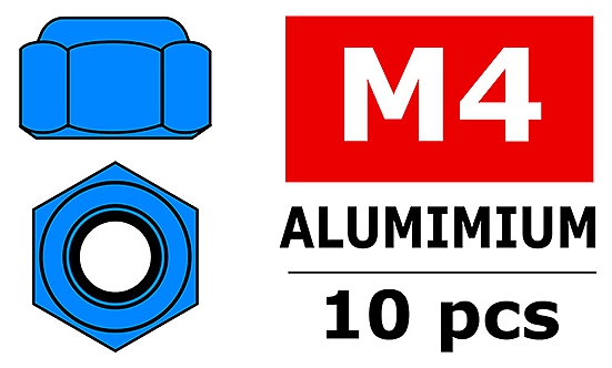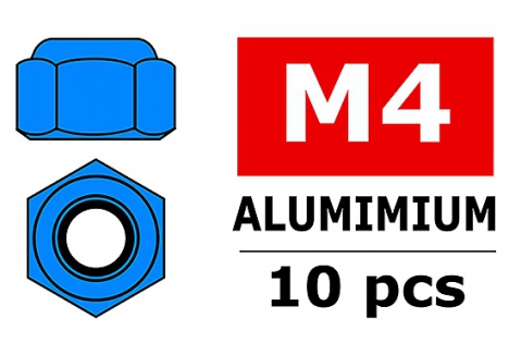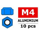 Corally CORALLY ALUMINIUM NYLSTOP NUT M4 BLUE 10 PCS C-3106-40-4