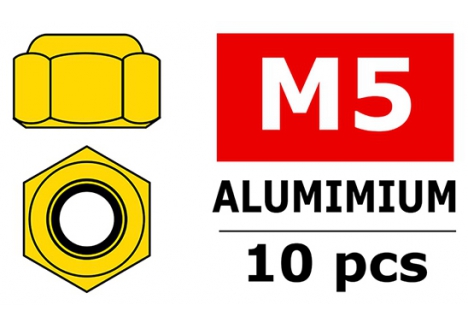 Corally CORALLY ALUMINIUM NYLSTOP NUT M5 GOLD 10 PCS C-3106-50-0
