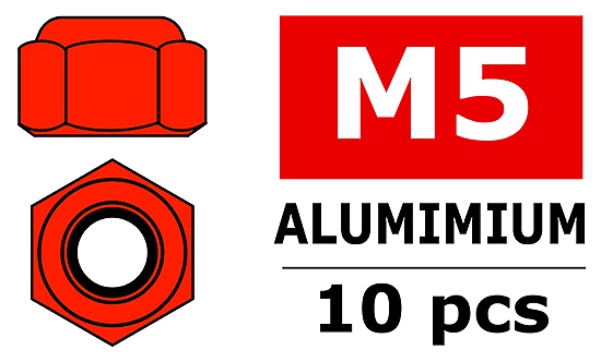 Corally CORALLY ALUMINIUM NYLSTOP NUT M5 RED 10 PCS C-3106-50-5