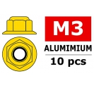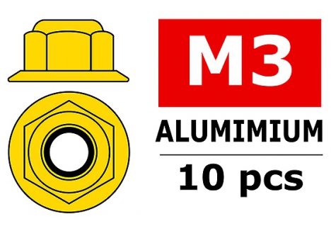 Corally CORALLY ALUMINIUM NYLSTOP NUT M3 FLANGED GOLD 10 P C-3107-30-0