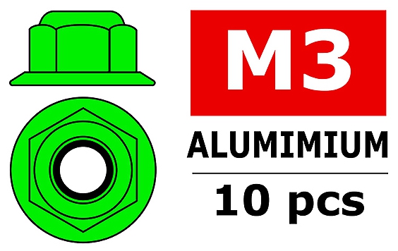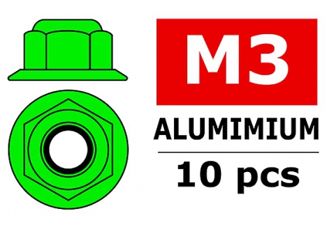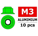 Corally CORALLY ALUMINIUM NYLSTOP NUT M3 FLANGED GREEN 10 C-3107-30-1