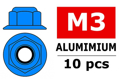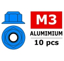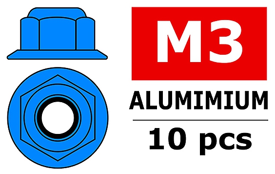 Corally CORALLY ALUMINIUM NYLSTOP NUT M3 FLANGED BLUE 10 P C-3107-30-4