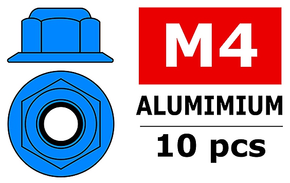 Corally CORALLY ALUMINIUM NYLSTOP NUT M4 FLANGED BLUE 10 P C-3107-40-4