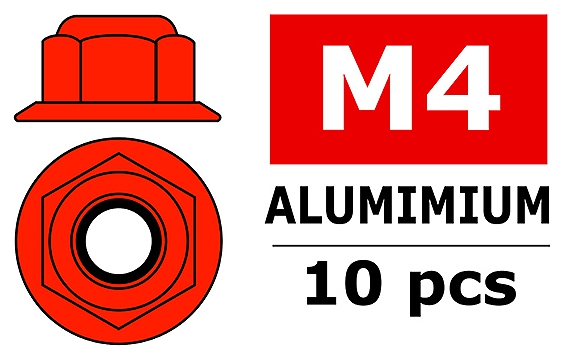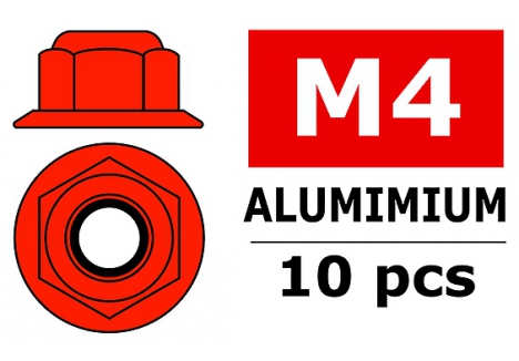 Corally CORALLY ALUMINIUM NYLSTOP NUT M4 FLANGED RED 10 PC C-3107-40-5