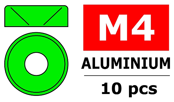 Corally CORALLY ALUMINIUM WASHER FOR M4 FLAT HEAD SCREWS OD=10mm Green (10 pcs) C-3213-40-1