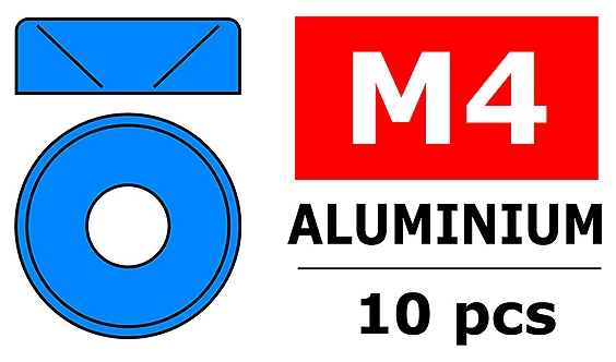 Corally CORALLY ALUMINIUM WASHER FOR M4 FLAT HEAD SCREWS OD=10mm Blue (10pcs) C-3213-40-4