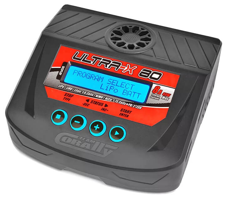 Professional and effective charging technology in a compact housing. The ULTRA-X 80 is a modern, efficient and powerful charger for lithium batteries from 1 to 6S, NiCd - NiMH batteries from 1 to 15 cells and lead acid batteries from 2 to 20V.