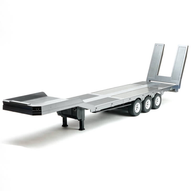 Ideal for transporting scale loads such as shipping containers, pallets or light construction equipment, this trailer adds genuine utility and visual impact to your haulage setup. It features a strong metal chassis, treaded rubber tyres, and a fifth-wheel coupling compatible with most 1:18 scale tractor units.