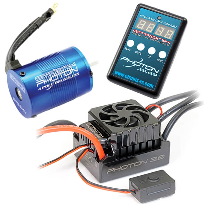 Unlock the convenience and performance of brushless technology with the 60A Photon 3.0 Sensorless Waterproof System. Designed for easy setup and offering a range of sensible KV-rated motors for most 1/10-scale off-road applications, the 60A Photon 3.0 is the ideal upgrade from a stock brushed system or the perfect starting point for upgrading your stock RTR brushless build. Whether you’re running a 1/10-scale buggy, truggy, short-course, or stadium truck, the Photon 3.0 delivers reliable power, smooth throttle control, and exceptional value.