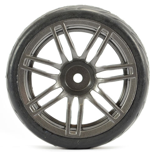 Fastrax FASTRAX 1/10 STREET/TREAD TYRE 14SP GUN METAL WHEEL FAST0078GM