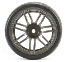 FASTRAX 1/10 STREET/TREAD TYRE 14SP GUN METAL WHEEL FAST0078GM
