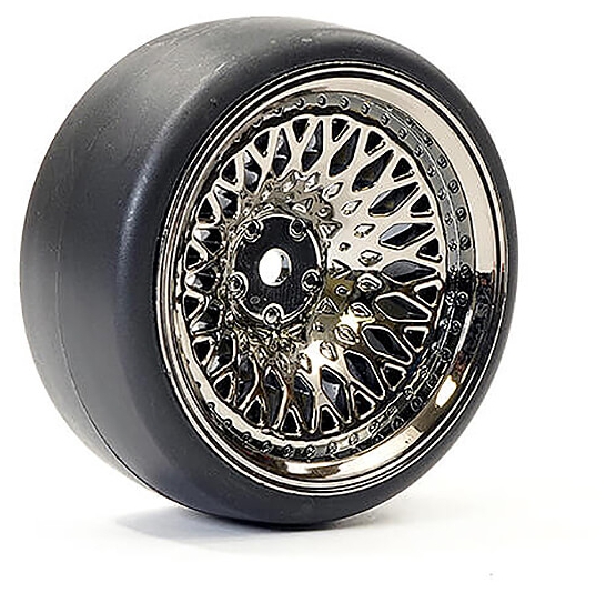 Fastrax FASTRAX 1/10 (4) DRIFT D1 TYRE w/9MM CLASSIC WHEELS - BLACK CHROME FAST1357BC-D19