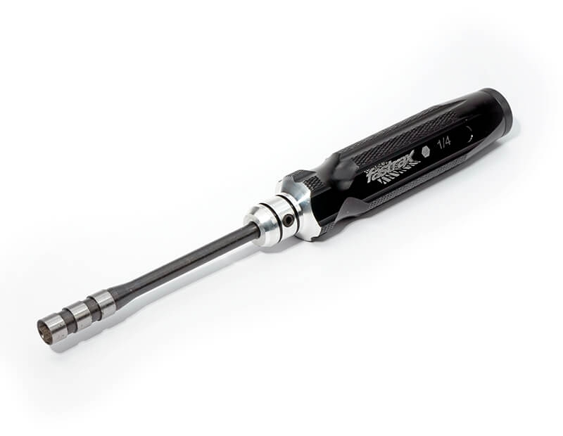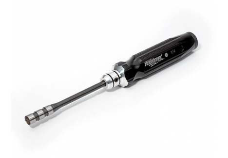 Machined aluminium handle and hardened nut driver, suitable for front wheels and shock mounting 4-40UNC sized nuts as used on Team Associated 2wd RC10 vintage buggies and trucks