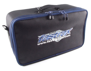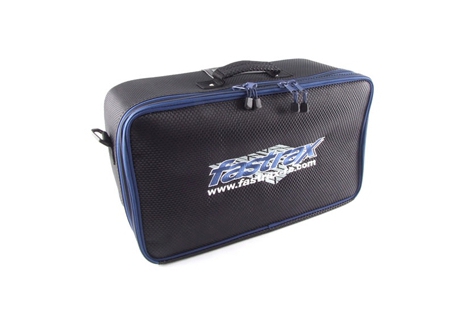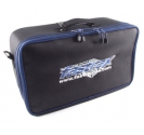 Designed for the 1/10th buggy or Touring Car racer who wants to travel light, this new tailor made bag is ideal for those trips down the club or test afternoon at the track. Integrated section with tool storage, zipped pockets inside flap and storage pockets within area. Can hold vehicle or wheels or tyres. Supplied with shoulder strap and finished in a cool carbon inspired weave.