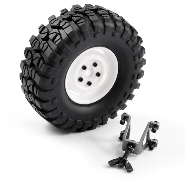FTX OUTBACK SPARE TYRE MOUNT & TYRE/STEEL LOOK LUG WHEEL WHITE FTX8250W