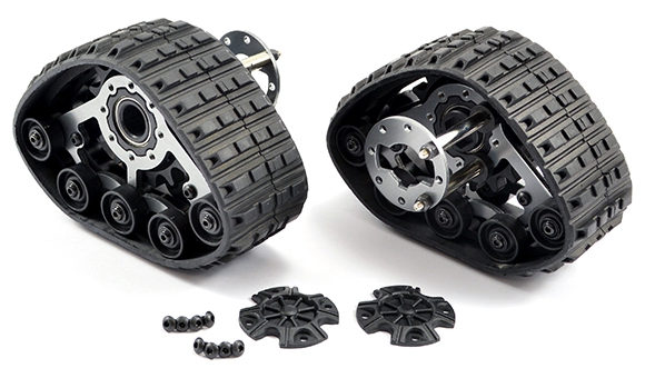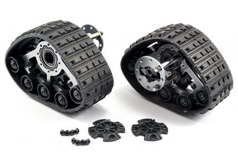 Designed to bolt directly onto the FTX Fury crawler, these units feature soft, plyable. block pattern rubber tracks that are 45mm wide and run with the help of a bearing supported centre drive cog and 10 black 20mm rollers. Moulded wheel caps screw to the side plates for a polished look.