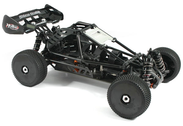 Tired of that common off road buggy look, with ugly body styling representing nothing in particular? Then why not spice up your off road buggy bashing experience with the new HoBao Hyper Cage Buggy. Using the new SS chassis platform the Cage buggy features a complete aluminium roll cage similar to some of todays single seater full size buggies. Performance is everything you come to expect from HoBao with the quality and rugged design ideal for the demands of 1/8off road. Despite its complex appearance the lightweight and impact resistant aluminium tubler cage can be hinged forward quickly with the simple removal of four screws providing quick access to the chassis and engine components.