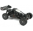 As an electric rolling chassis you are free to decide what electronic package is best for you and your budget. Underneath the roll cage you will find a chassis that can accommodate most of todays current crop of high performancebrushless motors, speed controllers and LiPo batteries. The moulded battery tray features three quick release velcro straps perfect for 2S, 3S and 4S packs. Colour coded, anodised aluminium chassis parts complement the roll cage assembly for an eye catching look. The newly designed front C-Hub suspension assembly, 3-differential driveline and 17mm big bore shocks soak up all that is in their path.