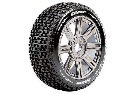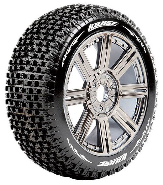 Series: B-PirateCompound: SoftColour: Black ChromeHex Fitment: 17mmFits: 1/8 Off-Road BuggyTyre Width: 42mmTyre Diameter: 114mmWheel Offset: TBCIncludes Insert: YesGlued: Yes